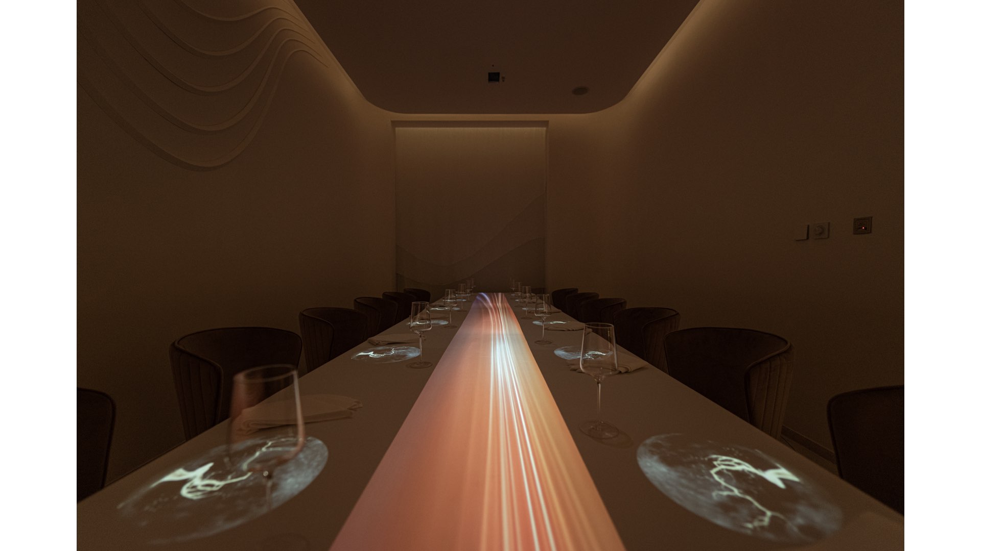 We create a private room by incorporating immersive dining experience through new media. The new media technology updates its content in a timely manner so that more immersive scenes could be produced combining better dishes and services, bringing guests a richness of sensory experience. We also utilize technical means to allow doors open and close without touching for a purpose of enhancing guests’ experience as well as their sense of ritual in this space.