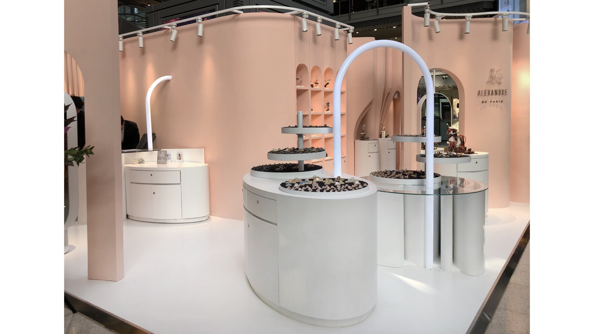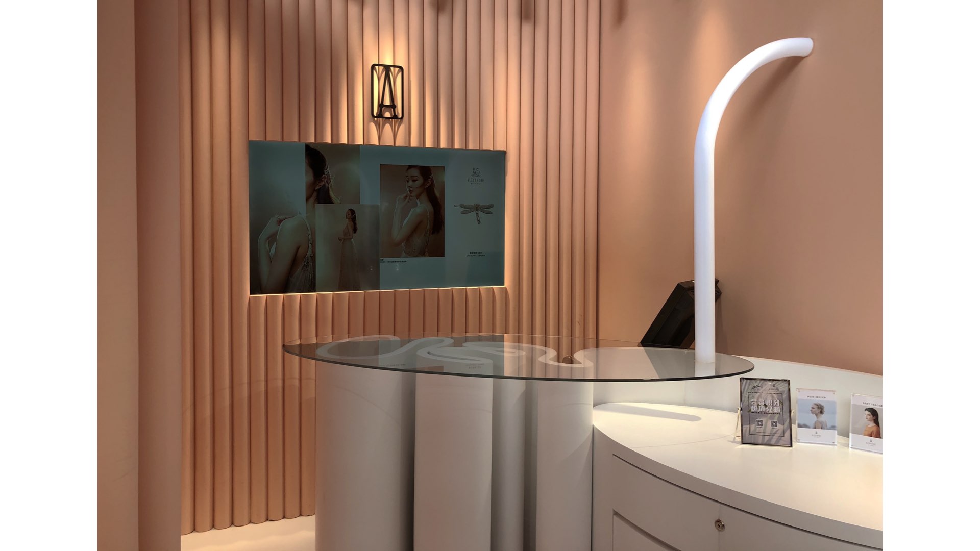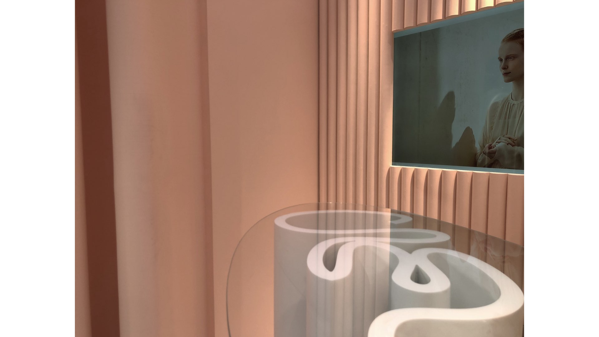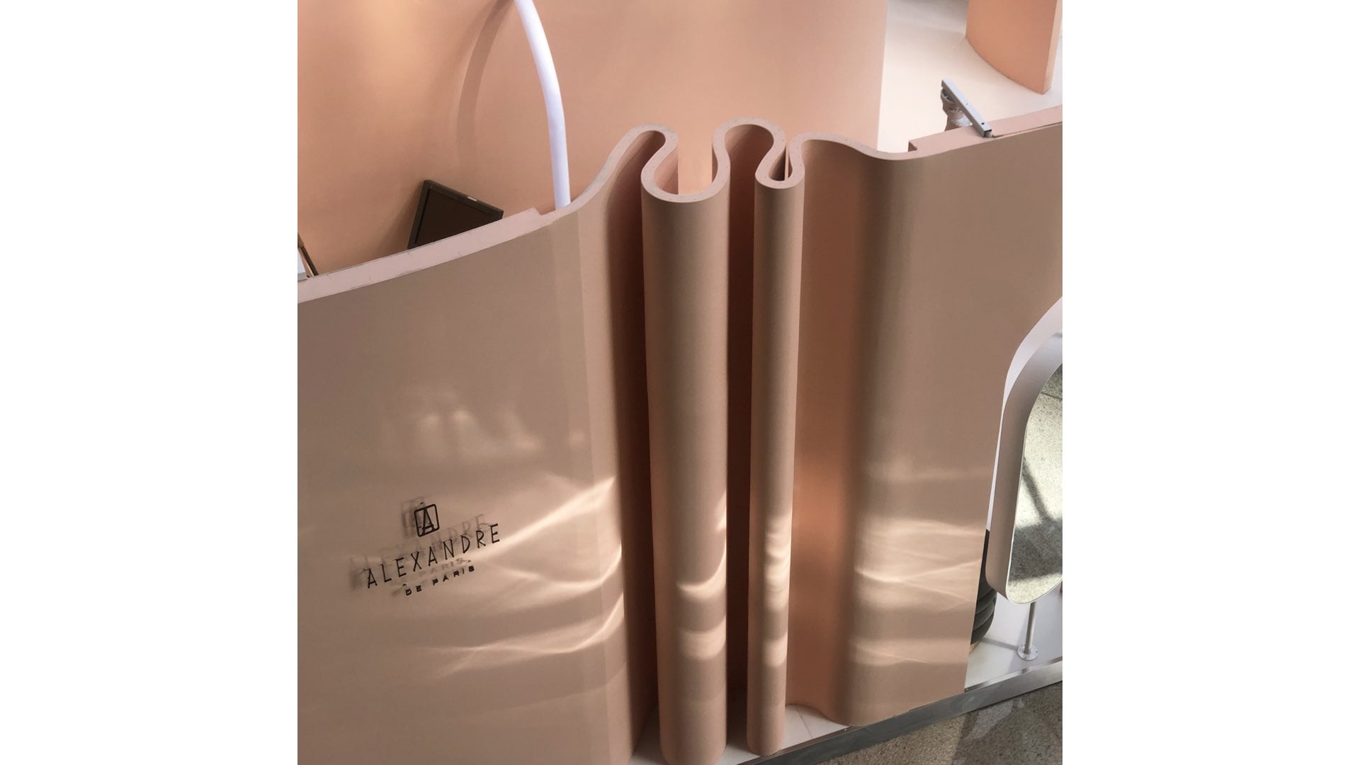 The brand comes from France, with rich historical background and inheritance stories. The product is aimed at women of different ages. Inspired by the flower, which is the most representative form of female elements, we use the abstract way to take the folds and cutting forms of flowers as the main expression elements of space, and evolve into walls and display furniture. The shadow on the walls is like waves of water , achieve the combination of dynamic and static, beautiful and warm space color, full of female atmosphere.