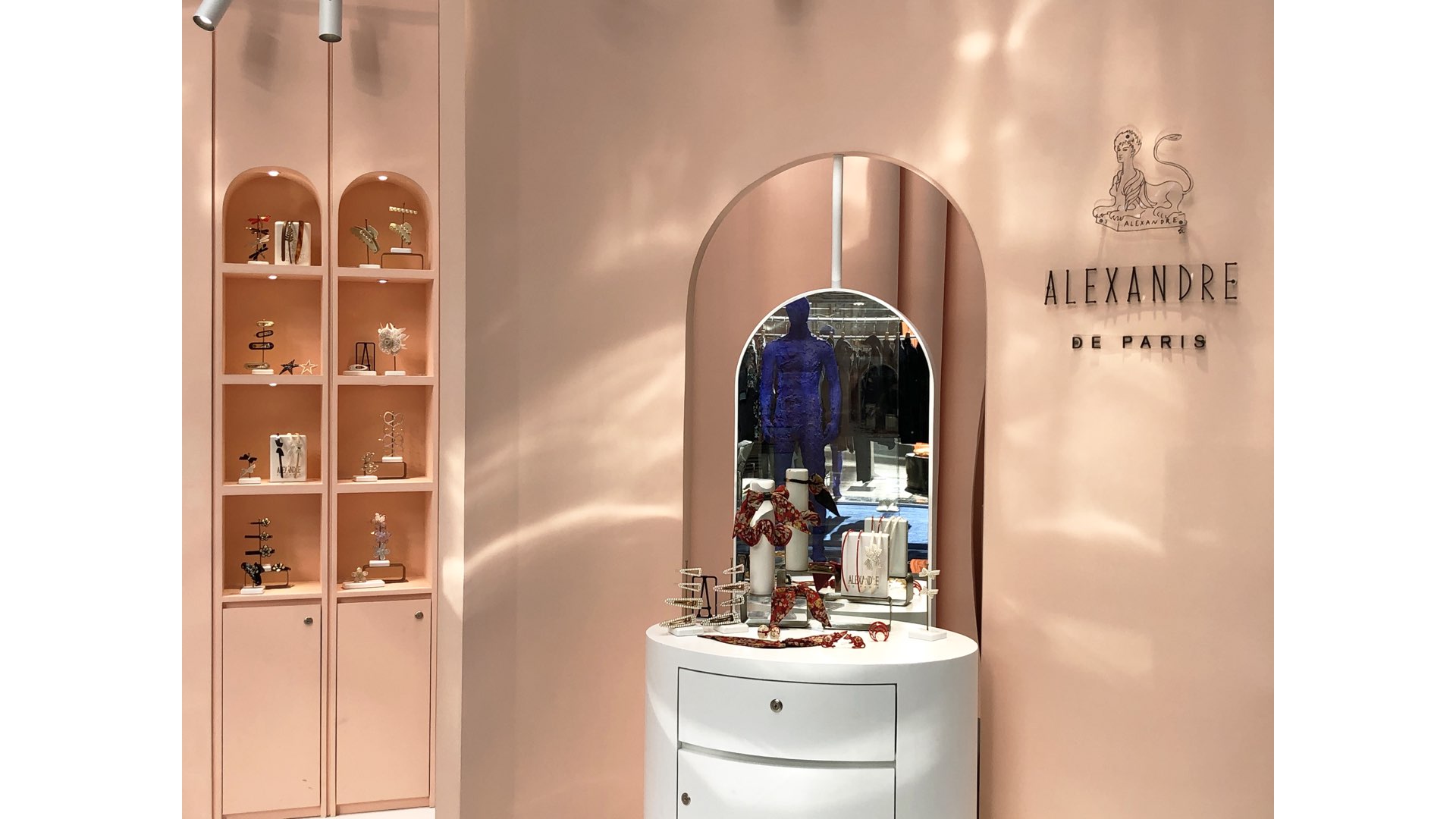 品牌源自法国,拥有丰富的历史背景和传承故事,产品针对不同年龄的女性群体,我们以花朵这个最具代表女性元素的形态为灵感,运用抽象方式将花朵的褶皱和切割形态作为空间的主要表达元素,演化为墙面和展示家具,光影打在墙面上又如水波一样荡起了波澜,动静结合,空间颜色靓丽温馨,充满了女性氛围。