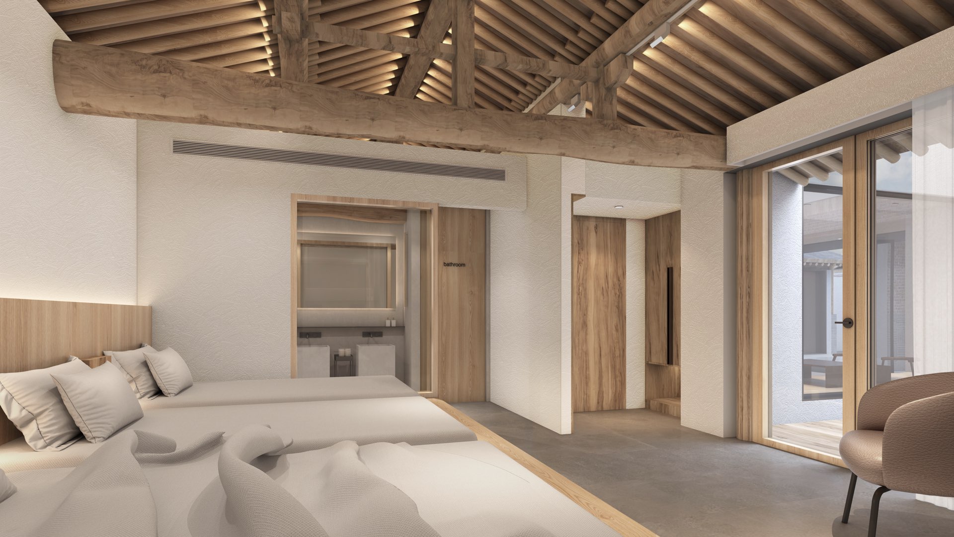 We use the current situation of the small courtyard to build a courtyard combining the old and the new. We keep the old seemingly obsolete materials, reuse them and integrate them into the new materials. We have kept memories and stories for the small courtyard. We hope that this is a personal homestay. Each room will have its own private small courtyard, so that people can completely relax here and have conversation with nature.