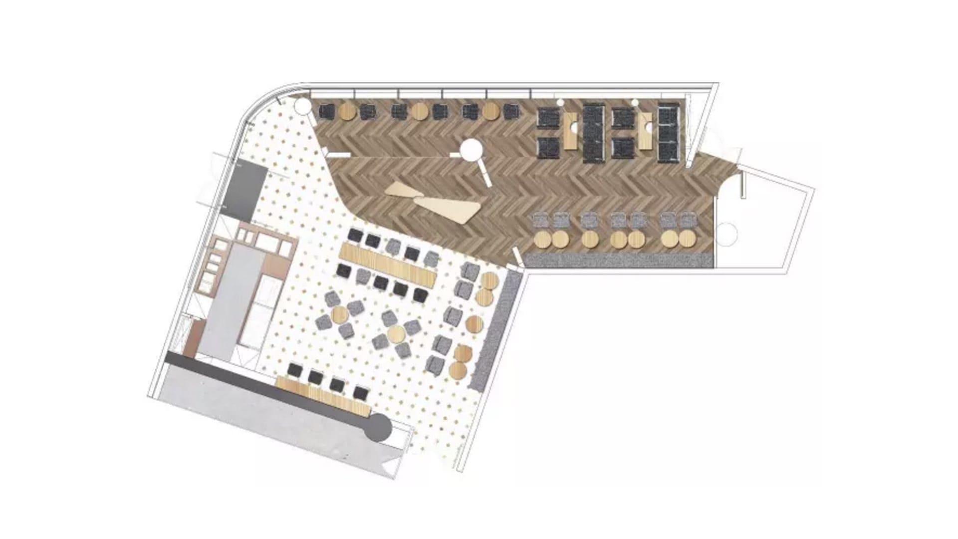 飞利浦咖啡厅选址北京金融大街,为众多金融机构和企业总部的聚集地,涵盖了从白领到学生等不同层次的消费人群。170平方米的空间主要包括前台区、展示区和卡座区。